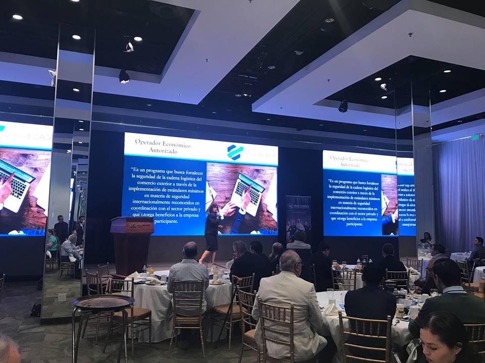 Conferencia Magistral Organizada por la Asociación Nacional INCOMEX, con el fin de dar a conocer información relevante en materia de Comercio Exterior, la conferencia: ¿Cuáles son los escenarios para el comercio en Norteamérica?, en la cual nuestra Directora, Lic. Cecilia Ortega, habla sobre temas relacionados a mejores prácticas y métodos para el Mantenimiento de la certificación OEA.